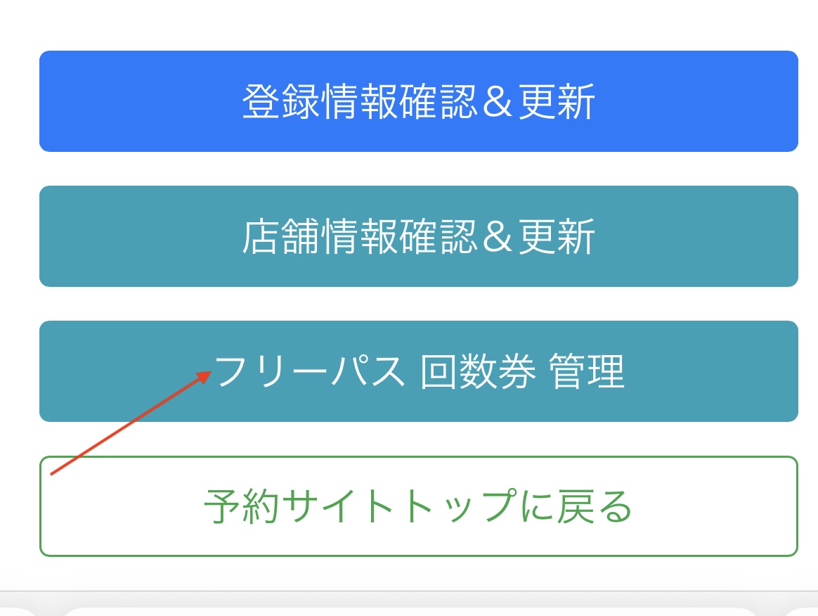 4.店舗側でWEB会員証を開くと「フリーパス 回数券 管理」の項目がありますのでこちらをタップします。