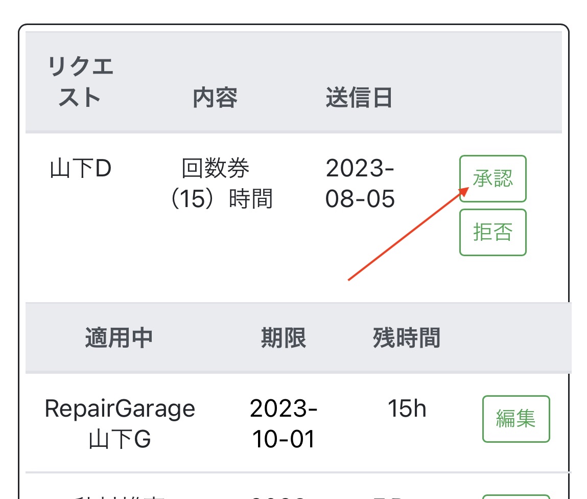 5.先ほどお客様より送っていただいたリクエストが表示されますのでこちらを承認すれば完了です。
